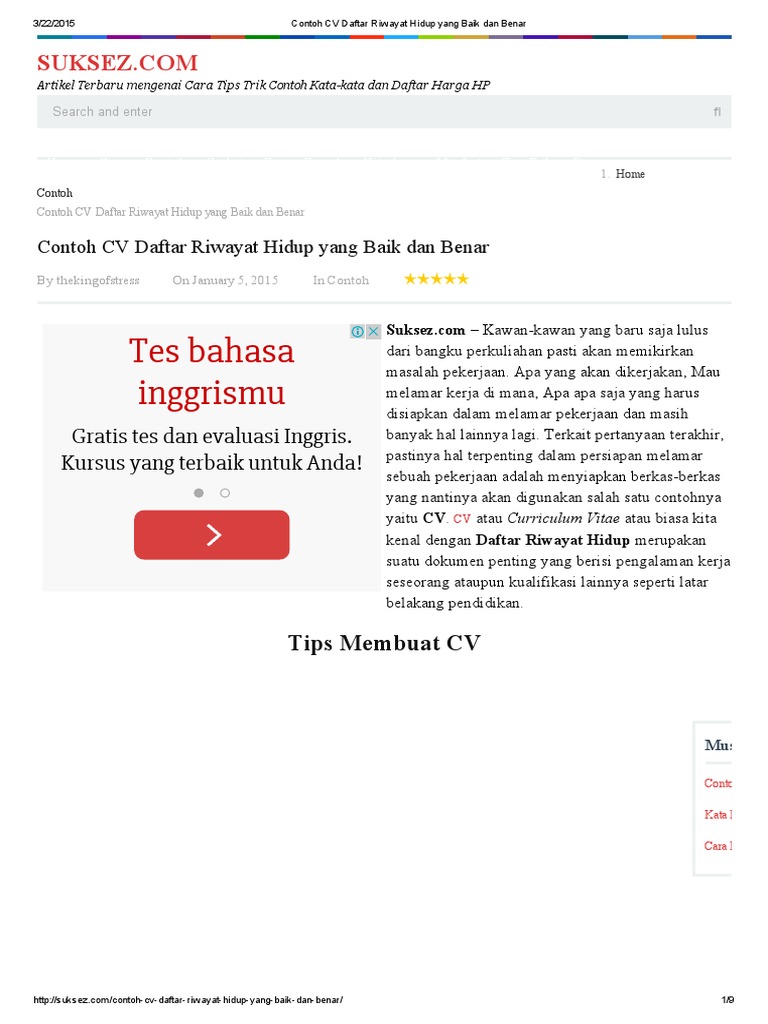 1 Contoh Cv Daftar Riwayat Hidup Yang Baik Dan Benar Pdf