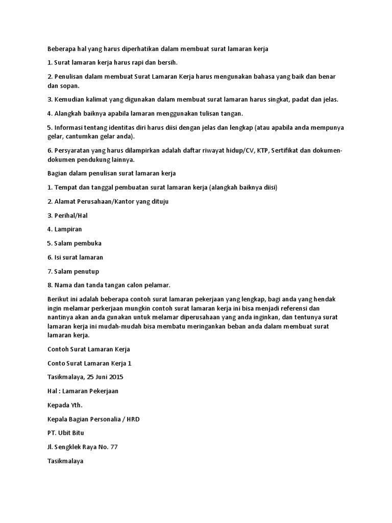 Contoh Surat Lamaran Kerja Terbaru Doc Pdf