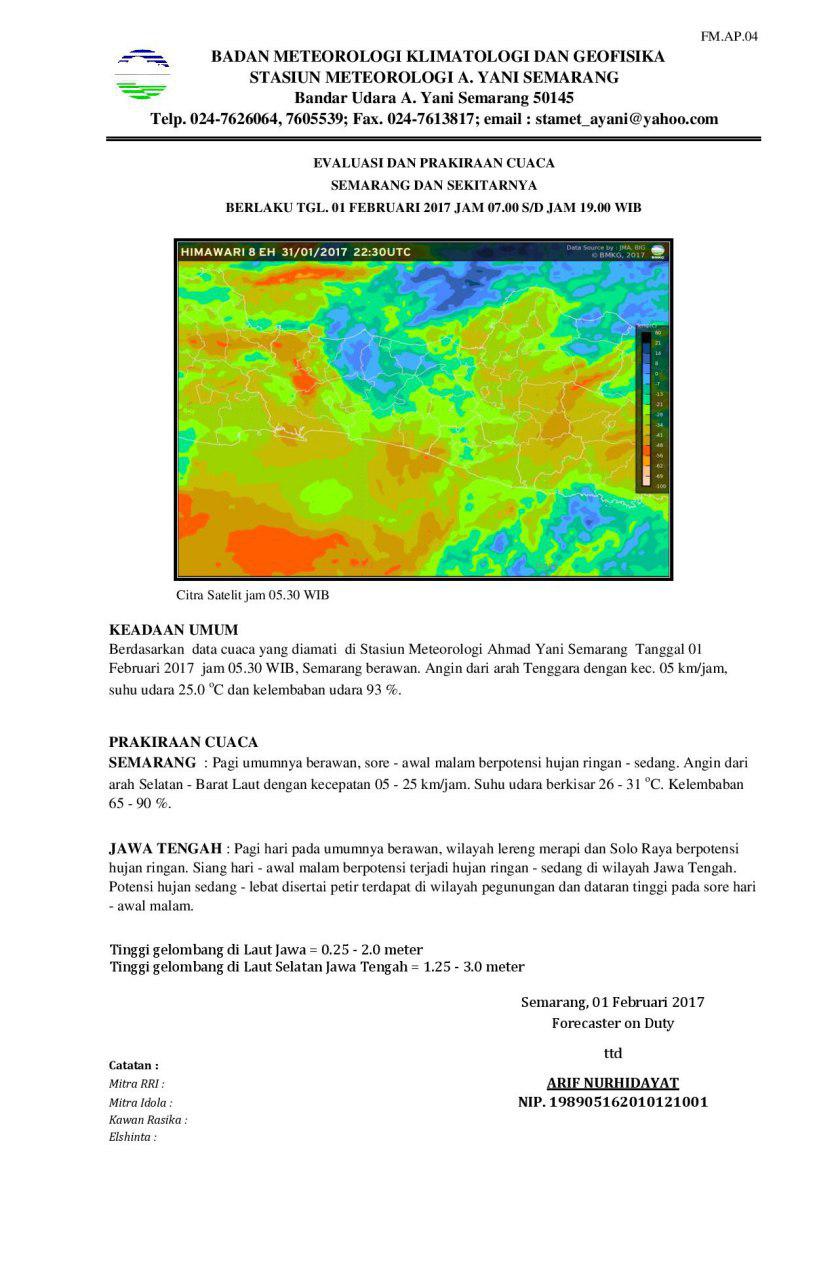 Bang Jack Evaluasi Prakiraan Cuaca Semarang 1 Februari 2017 Jam